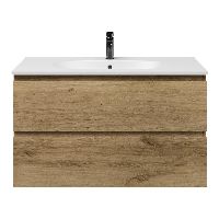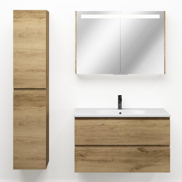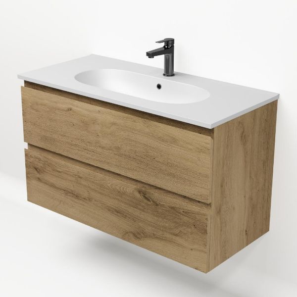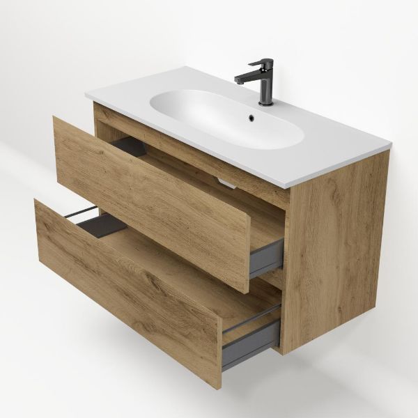 Bellanti Gisella/Como badmeubel 100x46 2 softclose laden warm eiken greeploos keramische wastafel mat wit met 1 kraangat