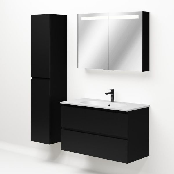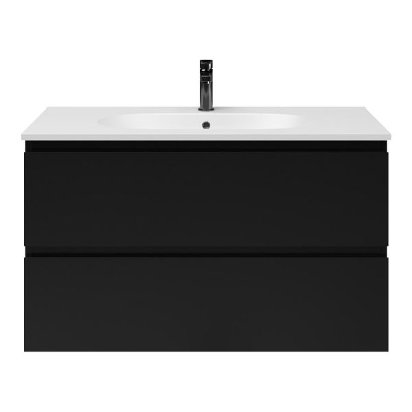 Bellanti Gisella/Como badmeubel 100x46 2 softclose laden zwart mat greeploos keramische wastafel mat wit met 1 kraangat