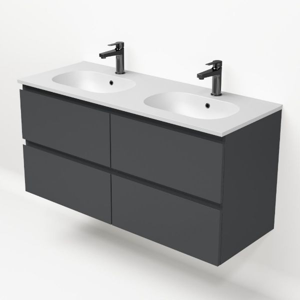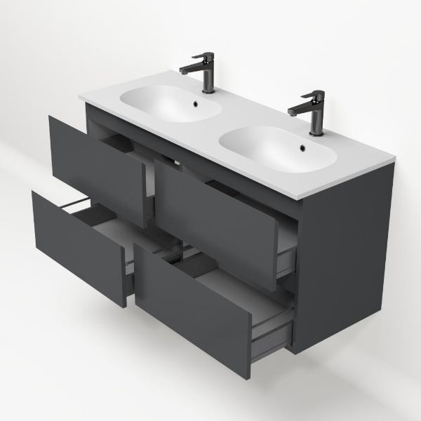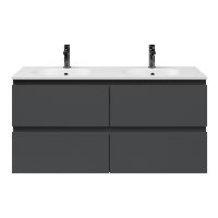 Bellanti Gisella/Como badmeubel 120x46 4 softclose laden antraciet mat greeploos keramische wastafel dubbel mat wit met 2 kraangaten