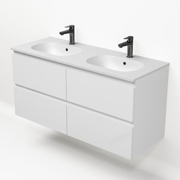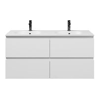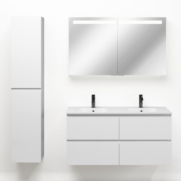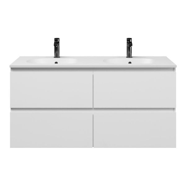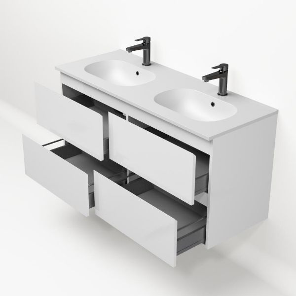 Bellanti Gisella/Como badmeubel 120x46 4 softclose laden wit hoogglans greeploos keramische wastafel dubbel mat wit met 2 kraangaten