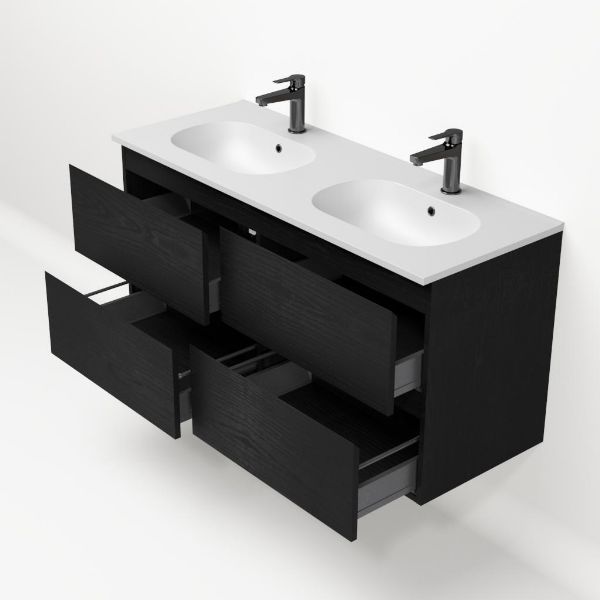 Bellanti Gisella/Como badmeubel 120x46 4 softclose laden zwart mat eiken greeploos keramische wastafel dubbel mat wit met 2 kraangaten