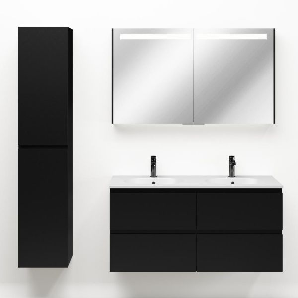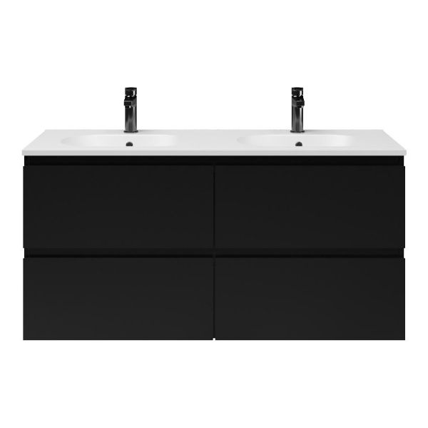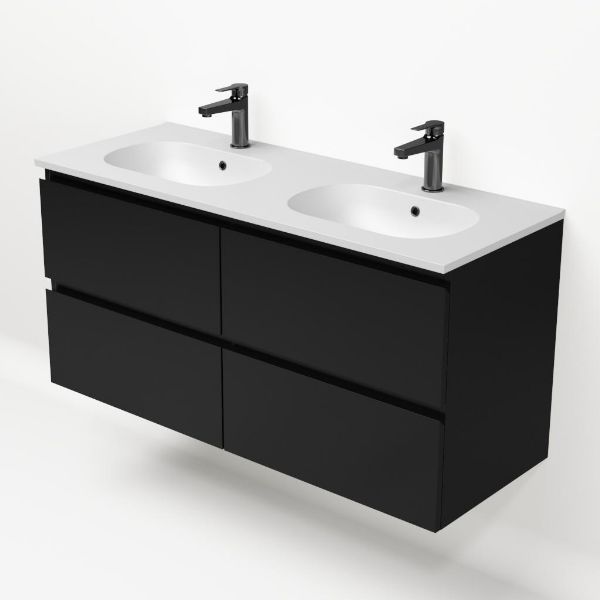 Bellanti Gisella/Como badmeubel 120x46 4 softclose laden zwart mat greeploos keramische wastafel dubbel mat wit met 2 kraangaten