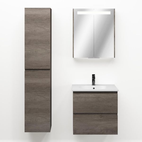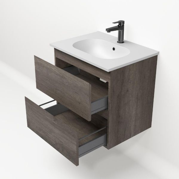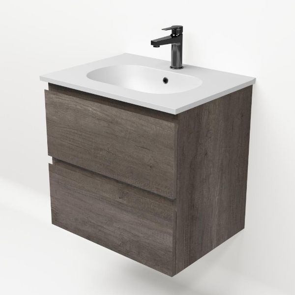 Bellanti Elena/Como badmeubel 60x46 2 softclose laden olm donker grijs greeploos keramische wastafel mat wit met 1 kraangat