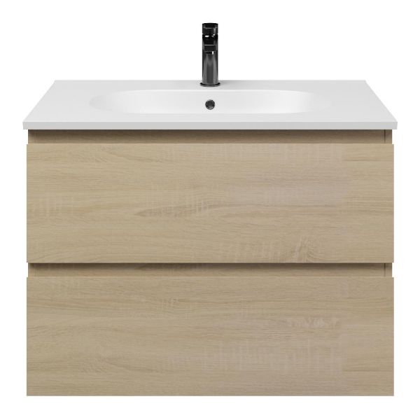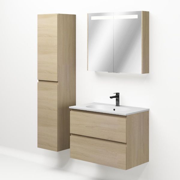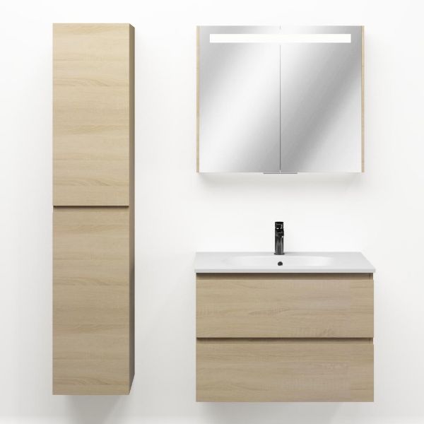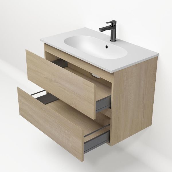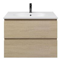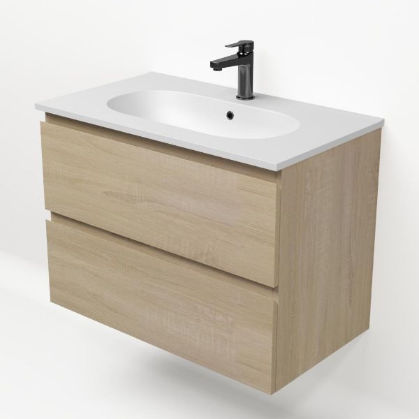 Bellanti Elena/Como badmeubel 80x46 2 softclose laden eiken licht greeploos keramische wastafel mat wit met 1 kraangat