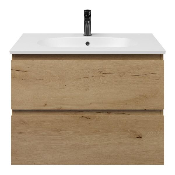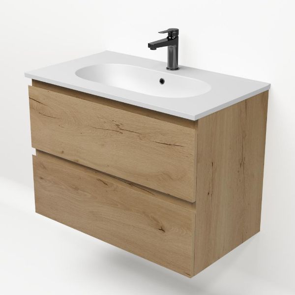 Bellanti Elena/Como badmeubel 80x46 2 softclose laden eiken natuur greeploos keramische wastafel mat wit met 1 kraangat
