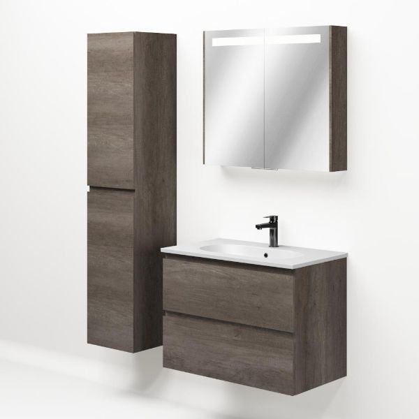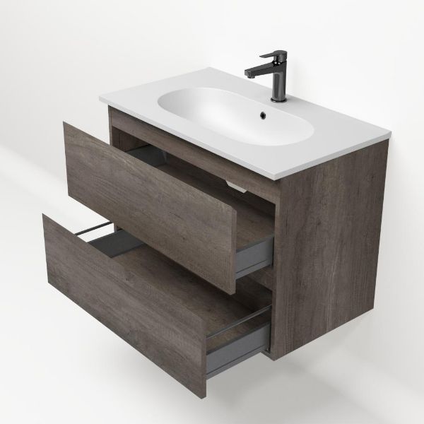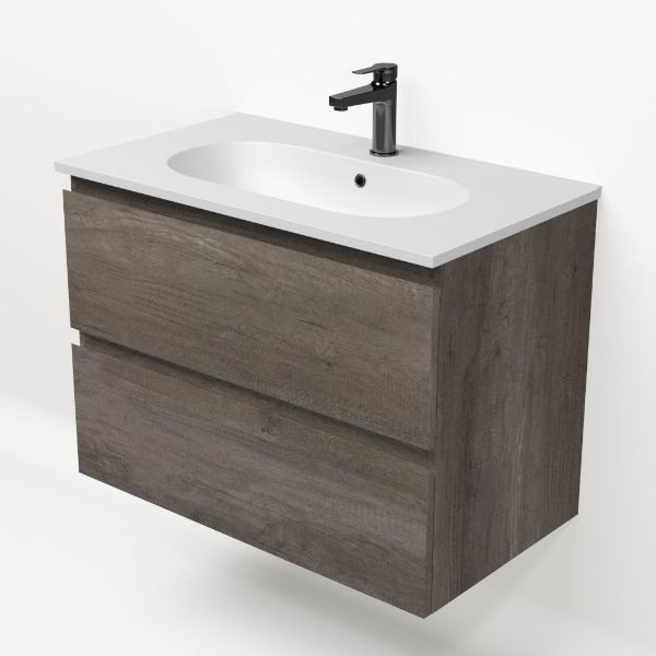 Bellanti Elena/Como badmeubel 80x46 2 softclose laden olm donker grijs greeploos keramische wastafel mat wit met 1 kraangat
