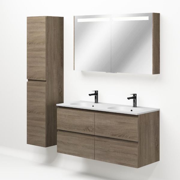 Bellanti Elena/Como badmeubel 120x46 4 softclose laden eiken donker greeploos keramische wastafel dubbel mat wit met 2 kraangaten