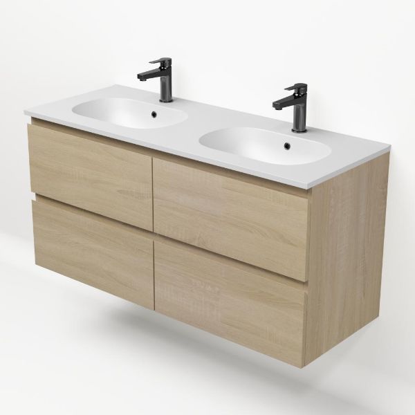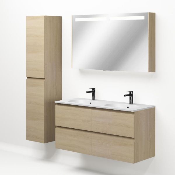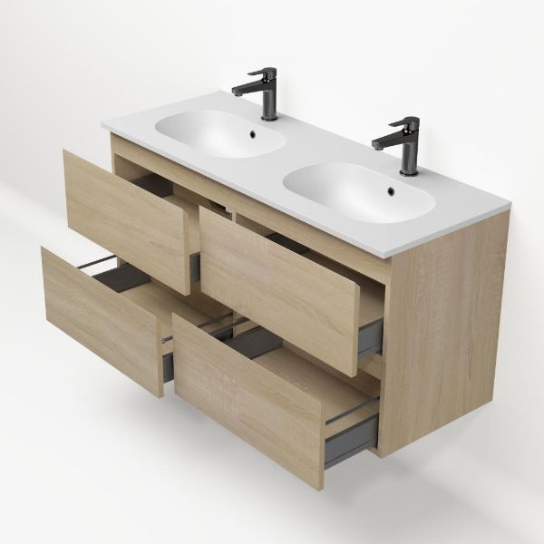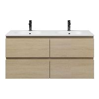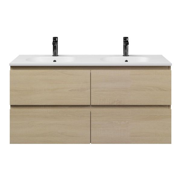 Bellanti Elena/Como badmeubel 120x46 4 softclose laden eiken licht greeploos keramische wastafel dubbel mat wit met 2 kraangaten