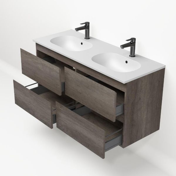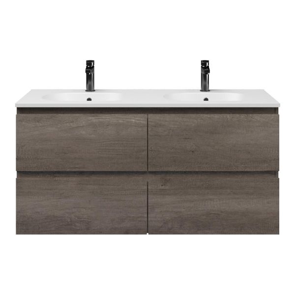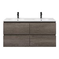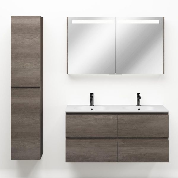 Bellanti Elena/Como badmeubel 120x46 4 softclose laden olm donker grijs greeploos keramische wastafel dubbel mat wit met 2 kraangaten
