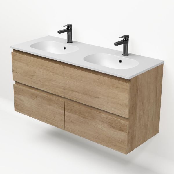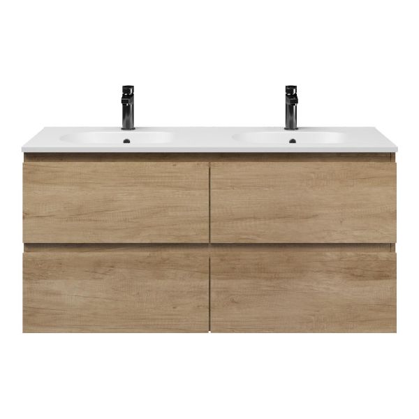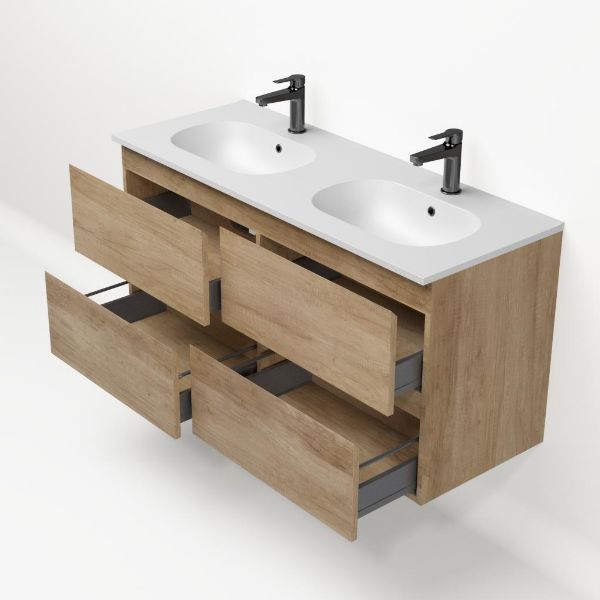 Bellanti Elena/Como badmeubel 120x46 4 softclose laden olm greeploos keramische wastafel dubbel mat wit met 2 kraangaten