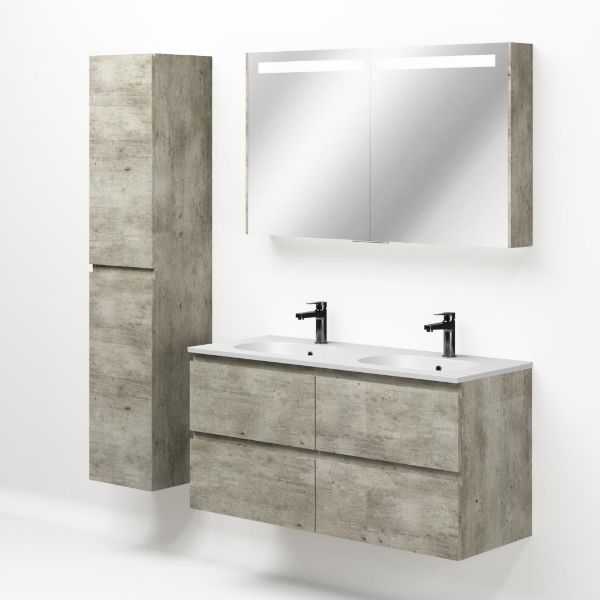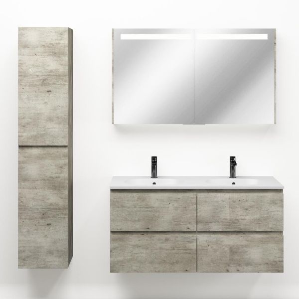Bellanti Elena/Como badmeubel 120x46 4 softclose laden steigerhout licht grijs greeploos keramische wastafel dubbel mat wit met 2 kraangaten