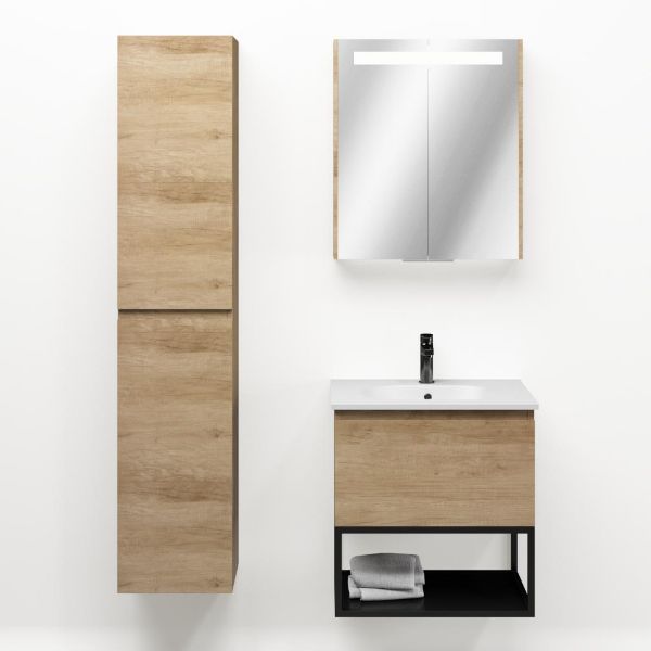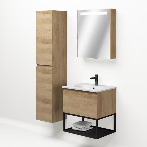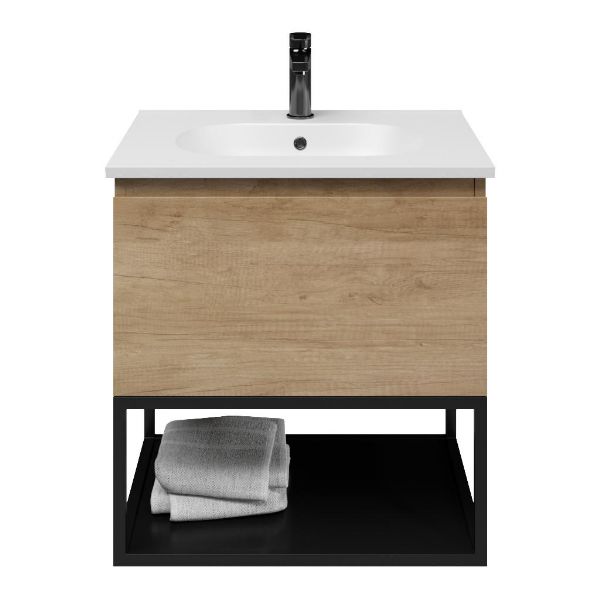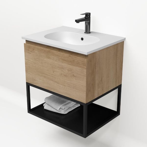 | | Bellanti Solo/Tela/Como badmeubel 60x46 1 softclose lade olm greeploos keramische wastafel mat wit met 1 kraangat met mat zwart metalen frame |