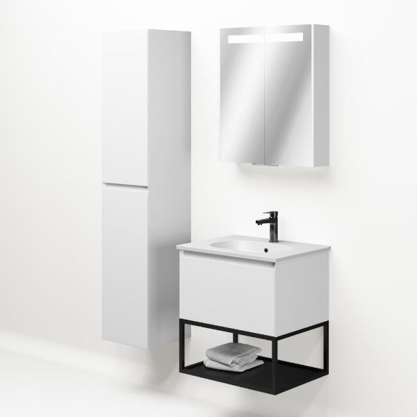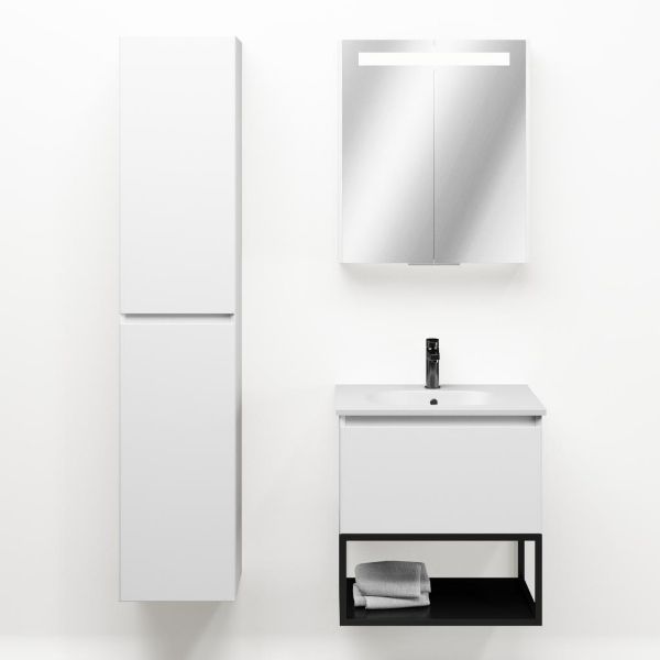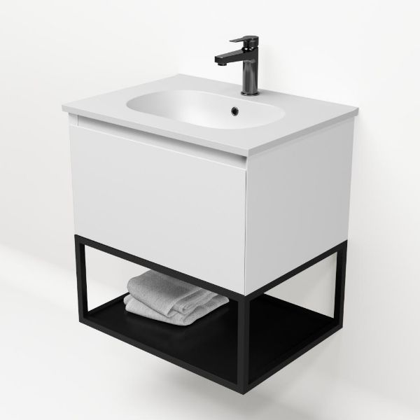 | Bellanti Solo/Tela/Como badmeubel 60x46 1 softclose lade wit mat greeploos keramische wastafel mat wit met 1 kraangat met mat zwart metalen frame |