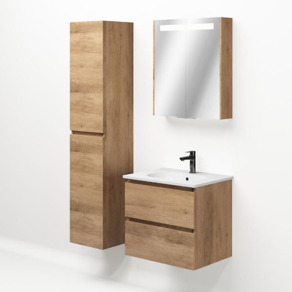 | TrisLine Gia/Como badmeubel 60x46 2 softclose laden sevilla eiken greeploos keramische wastafel wit met 1 kraangat |
