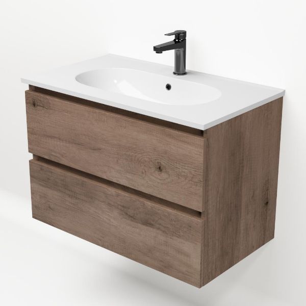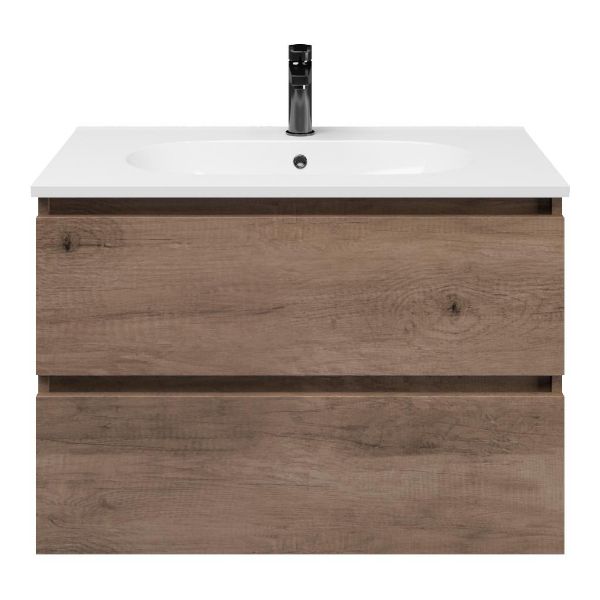 | | TrisLine Gia/Como badmeubel 80x46 2 softclose laden allicante eiken greeploos keramische wastafel wit met 1 kraangat |
