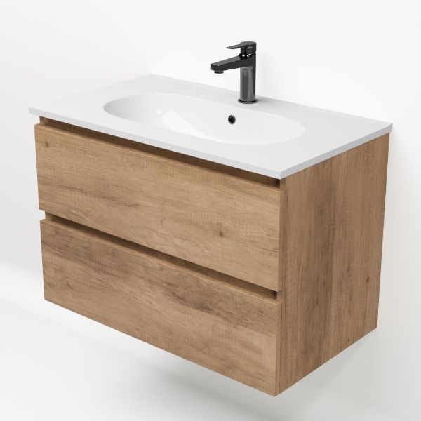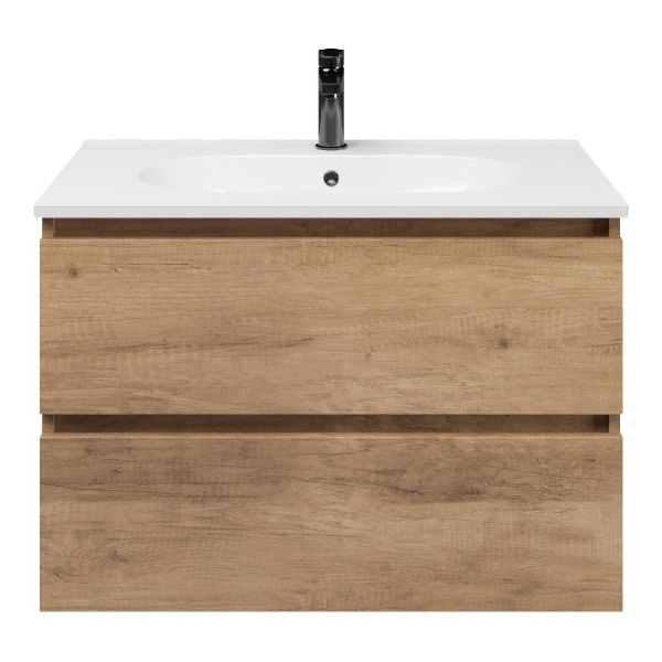 | | TrisLine Gia/Como badmeubel 80x46 2 softclose laden sevilla eiken greeploos keramische wastafel wit met 1 kraangat |