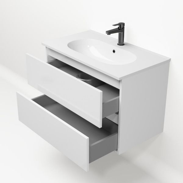 | | TrisLine Gia/Como badmeubel 80x46 2 softclose laden wit hoogglans greeploos keramische wastafel wit met 1 kraangat |