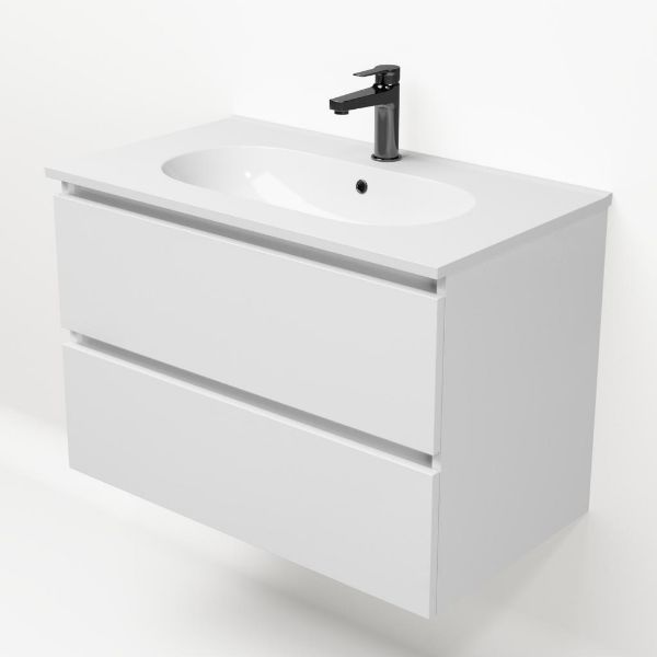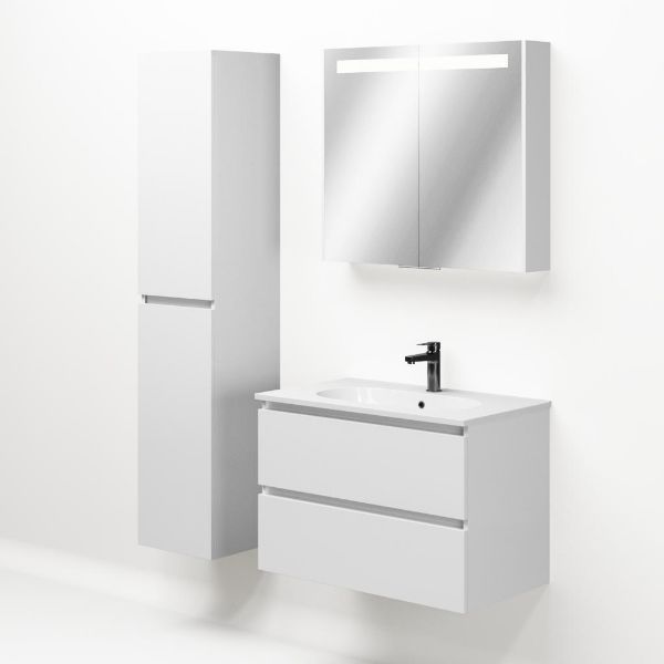 | TrisLine Gia/Como badmeubel 80x46 2 softclose laden wit hoogglans greeploos keramische wastafel wit met 1 kraangat |