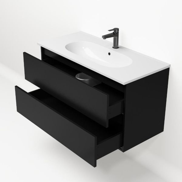 | TrisLine Gia/Como badmeubel 100x46 2 softclose laden mat zwart greeploos keramische wastafel wit met 1 kraangat |