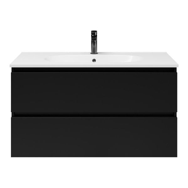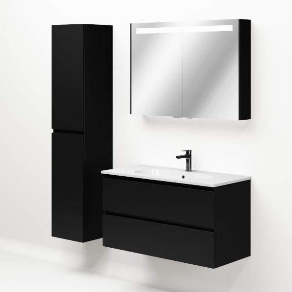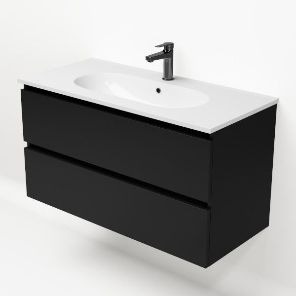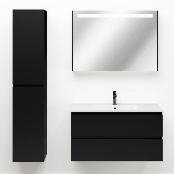| | TrisLine Gia/Como badmeubel 100x46 2 softclose laden mat zwart greeploos keramische wastafel wit met 1 kraangat |