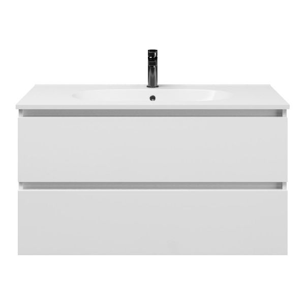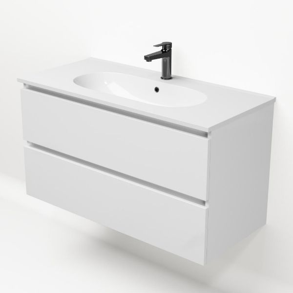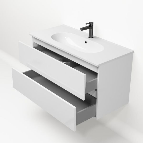 | | TrisLine Gia/Como badmeubel 100x46 2 softclose laden wit hoogglans greeploos keramische wastafel wit met 1 kraangat |