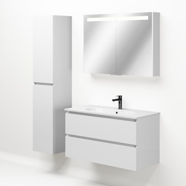 | TrisLine Gia/Como badmeubel 100x46 2 softclose laden wit hoogglans greeploos keramische wastafel wit met 1 kraangat |