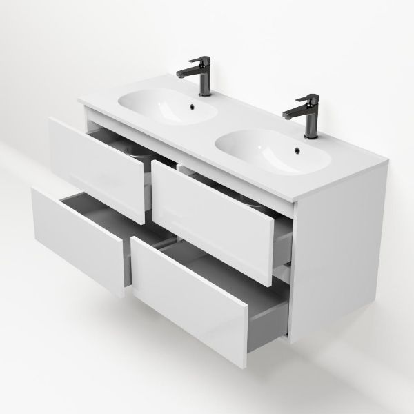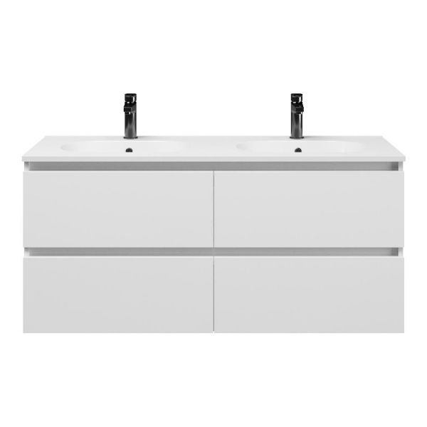 | | TrisLine Gia/Como badmeubel 120x46 4 softclose laden wit hoogglans greeploos keramische wastafel dubbel wit met 2 kraangaten |