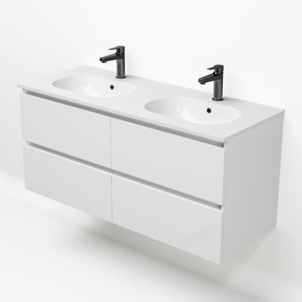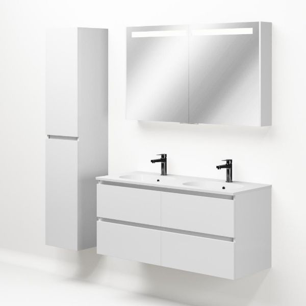 | TrisLine Gia/Como badmeubel 120x46 4 softclose laden wit hoogglans greeploos keramische wastafel dubbel wit met 2 kraangaten |