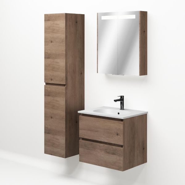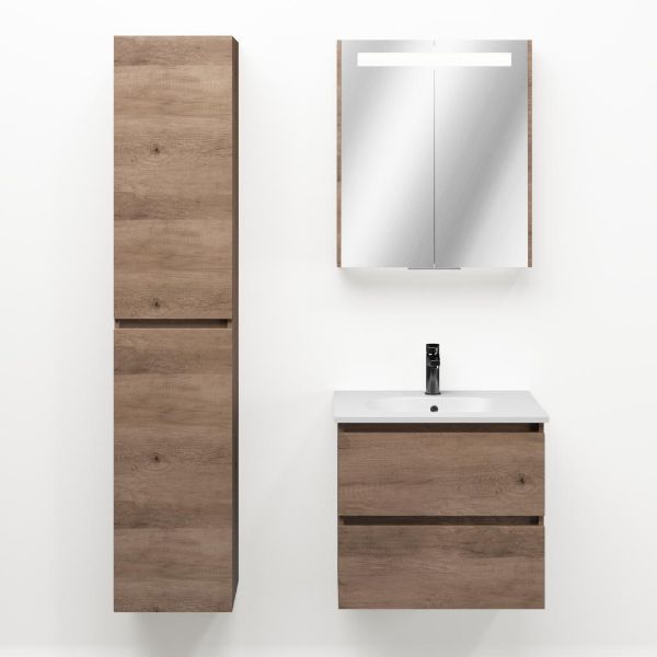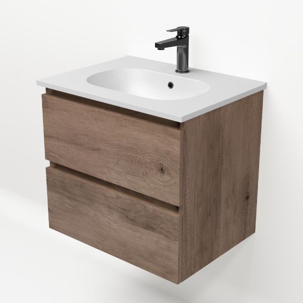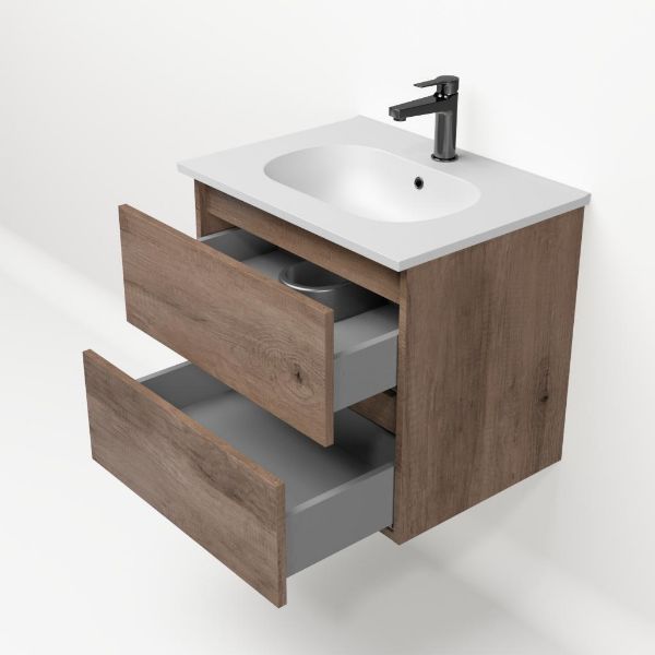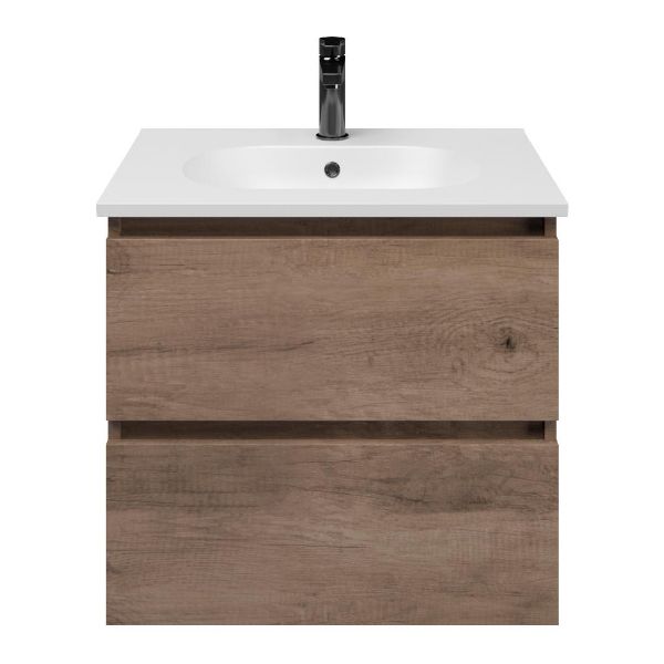 | | TrisLine Gia/Como badmeubel 60x46 2 softclose laden allicante eiken greeploos keramische wastafel mat wit met 1 kraangat |