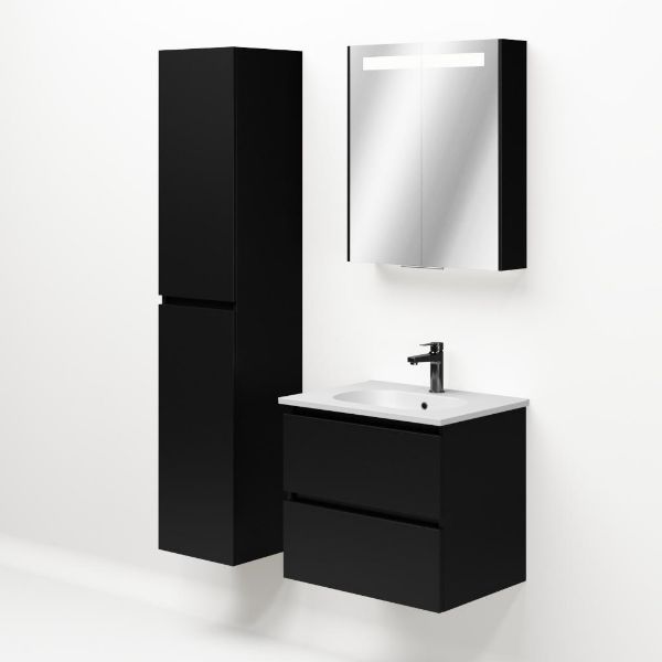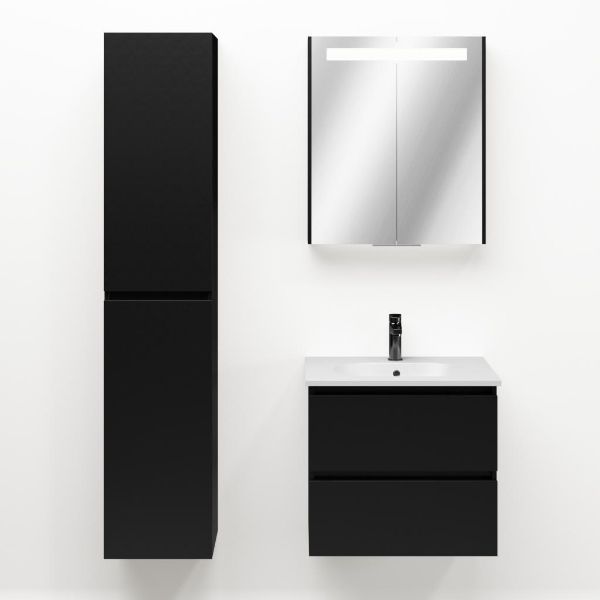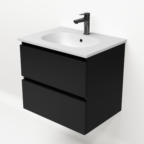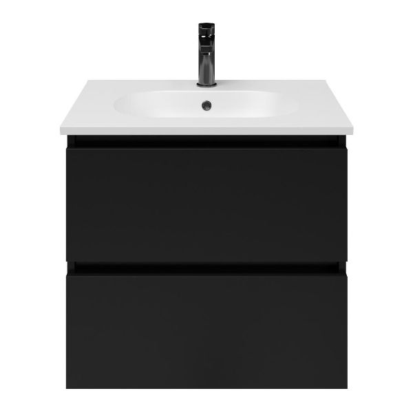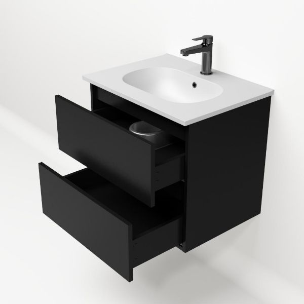 | TrisLine Gia/Como badmeubel 60x46 2 softclose laden mat zwart greeploos keramische wastafel mat wit met 1 kraangat |