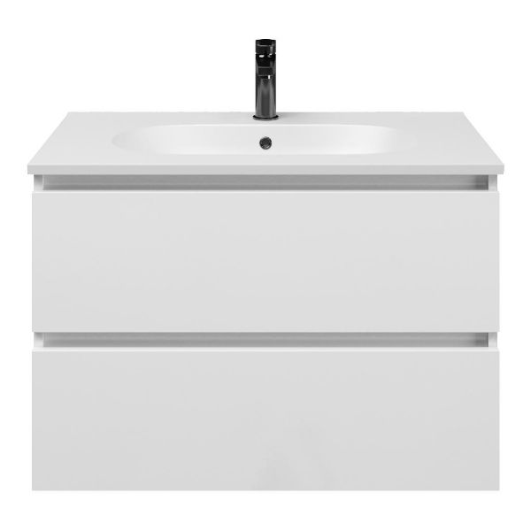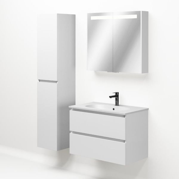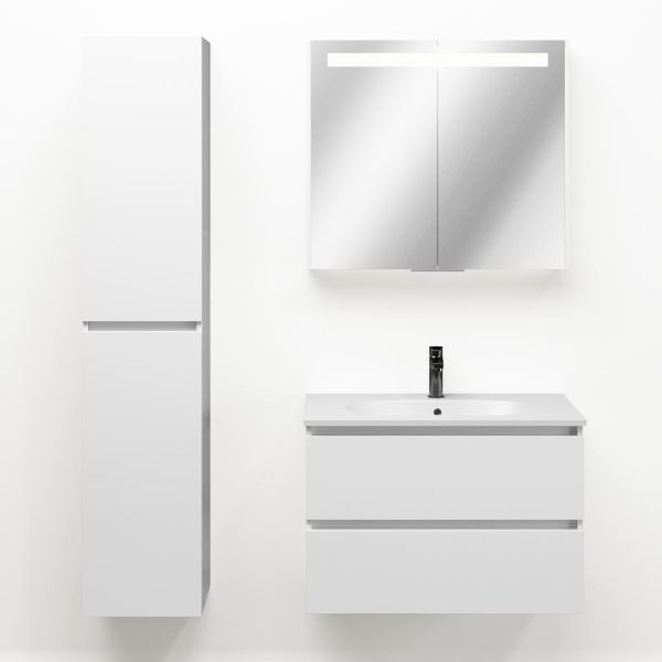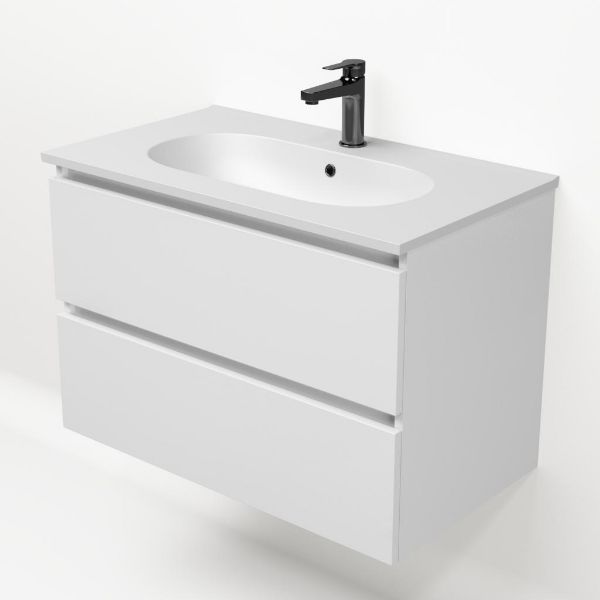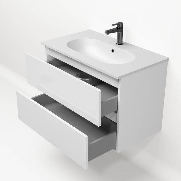 | TrisLine Gia/Como badmeubel 80x46 2 softclose laden wit hoogglans greeploos keramische wastafel mat wit met 1 kraangat |