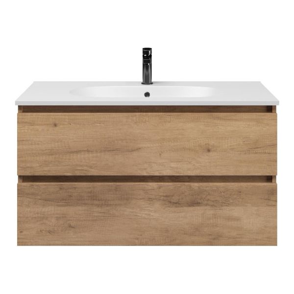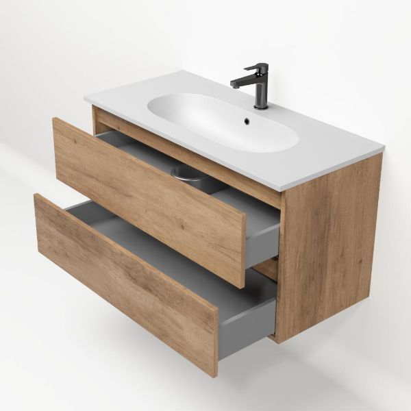 | | TrisLine Gia/Como badmeubel 100x46 2 softclose laden sevilla eiken greeploos keramische wastafel mat wit met 1 kraangat |