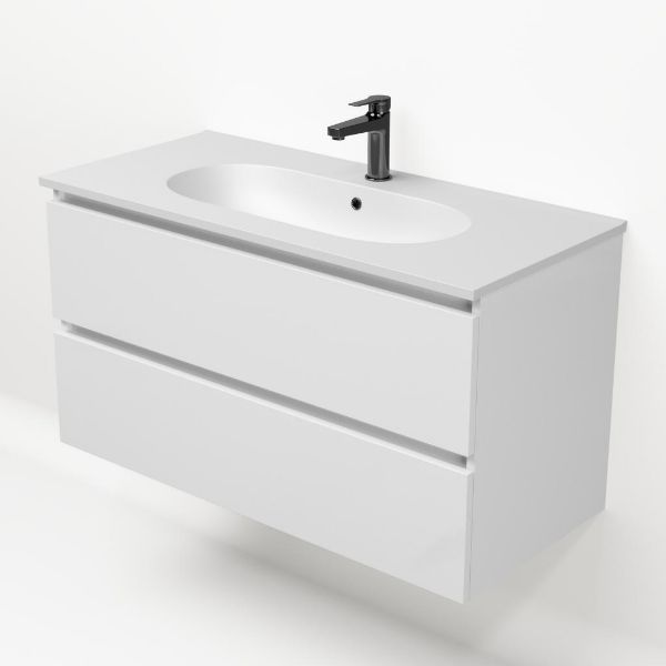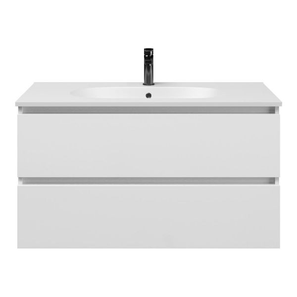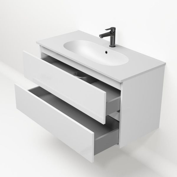 | | TrisLine Gia/Como badmeubel 100x46 2 softclose laden wit hoogglans greeploos keramische wastafel mat wit met 1 kraangat |