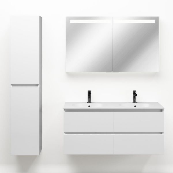 | TrisLine Gia/Como badmeubel 120x46 4 softclose laden wit hoogglans greeploos keramische wastafel dubbel mat wit met 2 kraangaten |