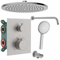 | Wolfsburg Ivan inbouw regendoucheset rvs look met thermostatische douchekraan, hoofddouche en handdouche naar keuze |