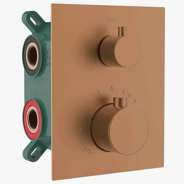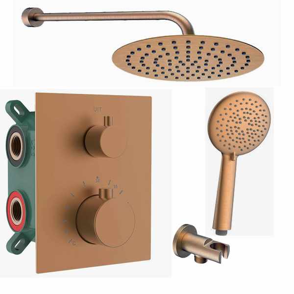 | | Wolfsburg Ivan inbouw regendoucheset geborsteld koper met thermostatische douchekraan, hoofddouche en handdouche naar keuze |